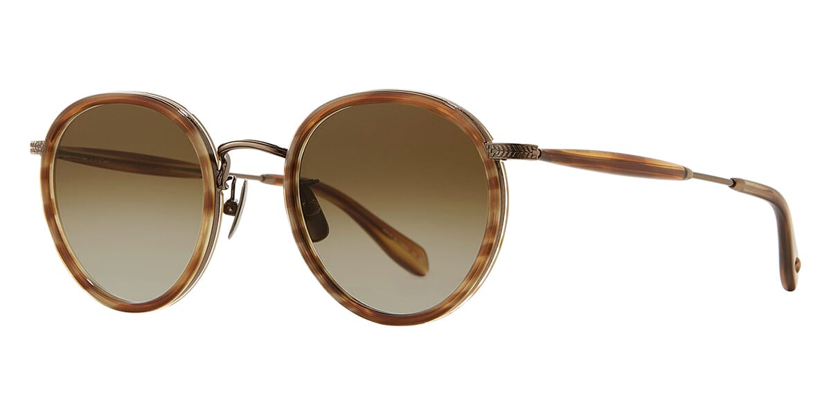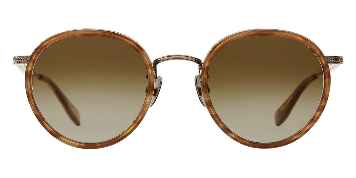 This square Garrett Leight sunglass comes in a brown havana with matte gold frame with brown gradient lenses.