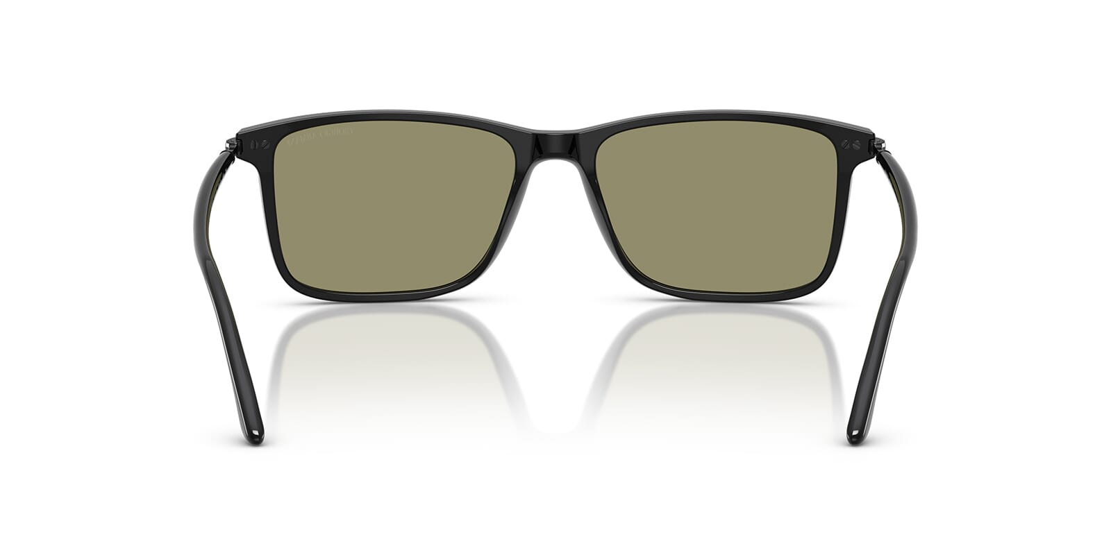 This rectangular Giorgio Armani sunglass comes in a black frame with green exclusive lenses.