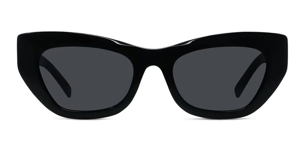 This cat eye Givenchy sunglass comes in a black frame with dark grey lenses.