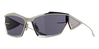 This cat eye Givenchy sunglass comes in a shiny palladium frame with grey lenses.