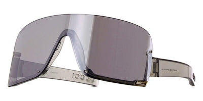 This shield Gucci sunglass comes in a shiny black frame with grey with light mirror lenses.