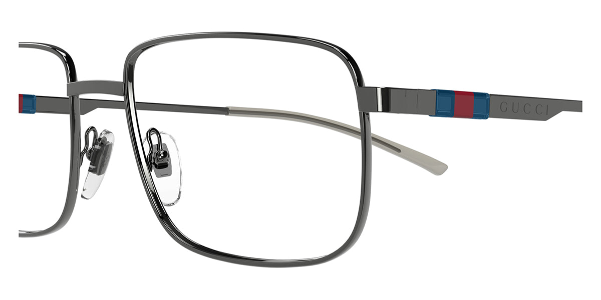 This square Gucci optical comes in a ruthenium frame.
