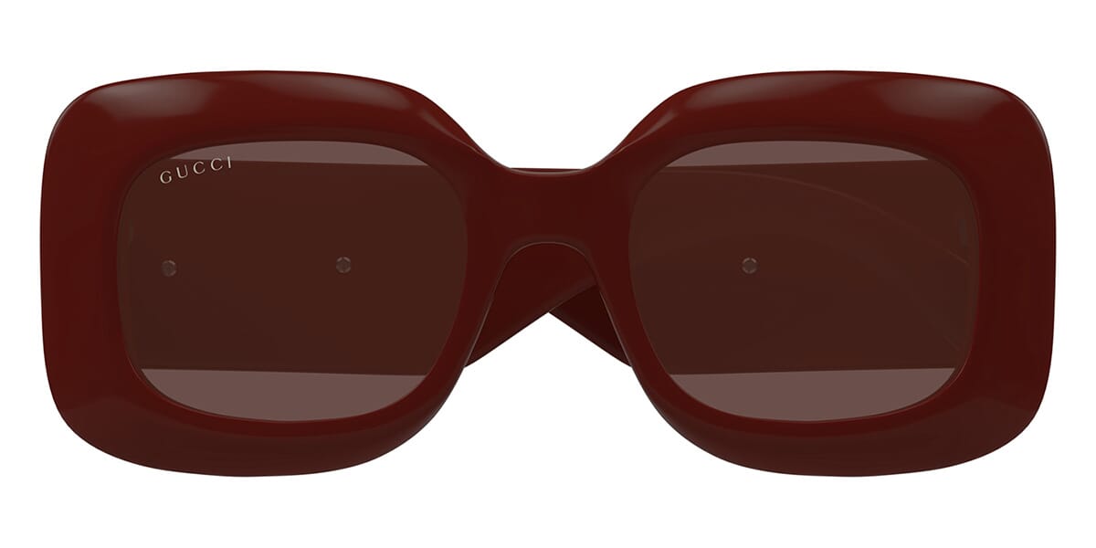 This square Gucci sunglass comes in a burgundy with silver frame with brown lenses.
