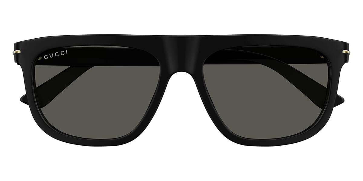 This square Gucci sunglass comes in a black frame with grey lenses.