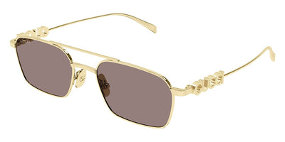 This square Gucci sunglass comes in a gold frame with green lenses.