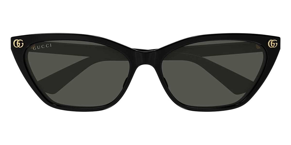 This cat eye Gucci sunglass comes in a black frame with grey lenses.