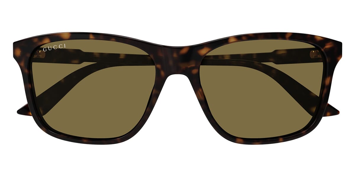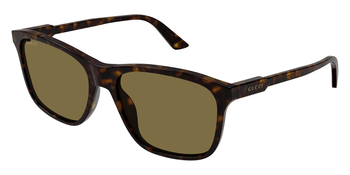 This square Gucci sunglass comes in a shiny dark havana frame with brown lenses.