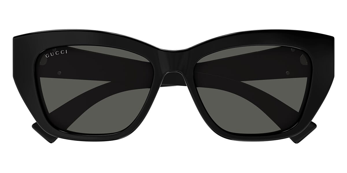 This cat eye Gucci sunglass comes in a black frame with grey lenses.