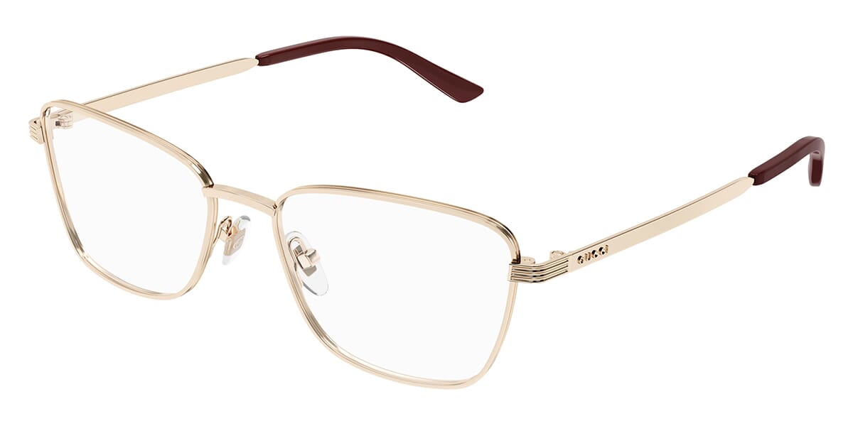 This cat eye Gucci optical comes in a shiny rose gold frame.