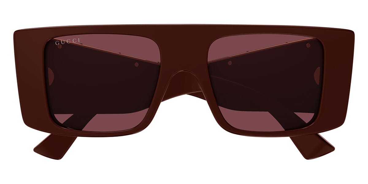 This square Gucci sunglass comes in a burgundy frame with red lenses.