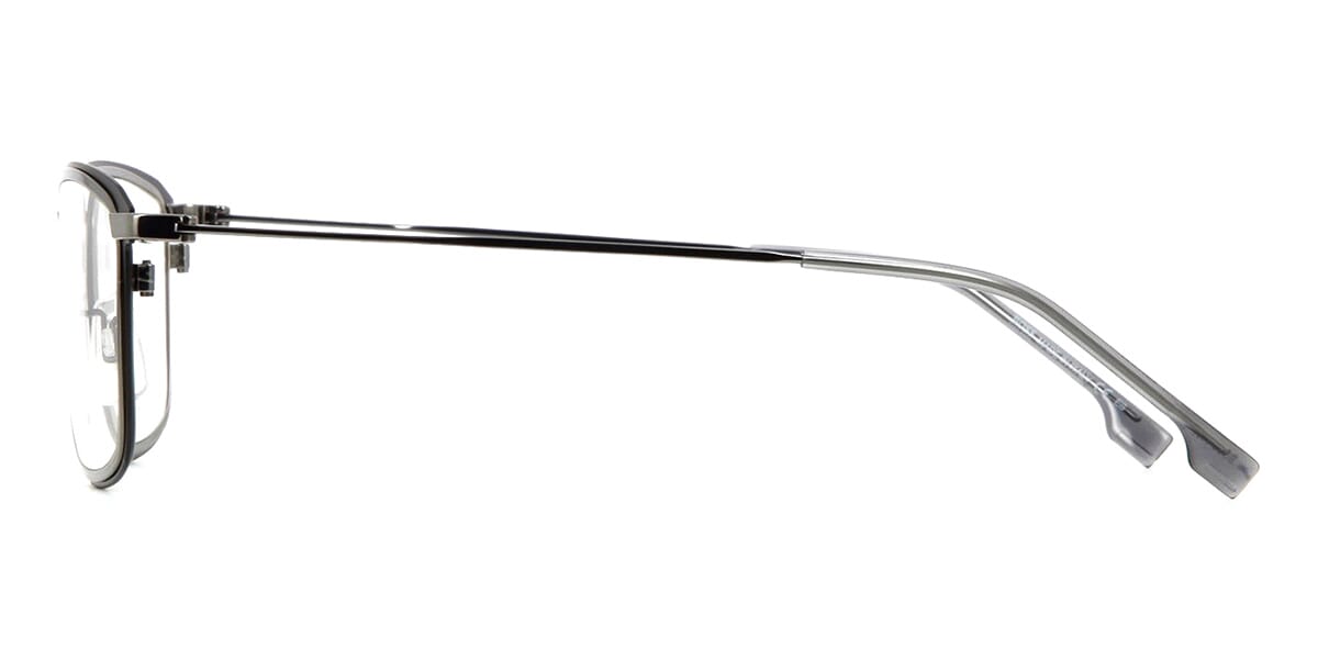 This square Hugo Boss optical comes in a dark ruthenium and matte black frame.