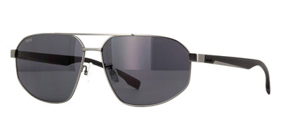 This square Hugo Boss sunglass comes in a matte black with grey rubber frame with grey smoke lenses.