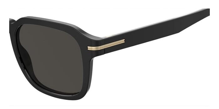 This square Hugo Boss sunglass comes in a black frame with grey lenses.