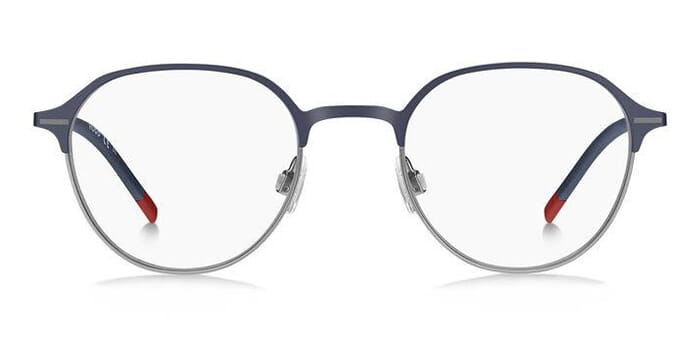 This round Hugo Boss optical comes in a blue and ruthenium frame.