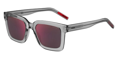 This square Hugo Boss sunglass comes in a shiny black frame with grey smoke with light mirror lenses.