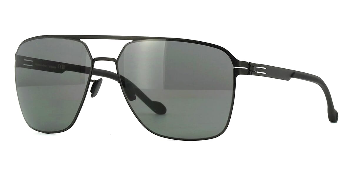This square ic! berlin sunglass comes in a matte black frame with grey with light mirror lenses.