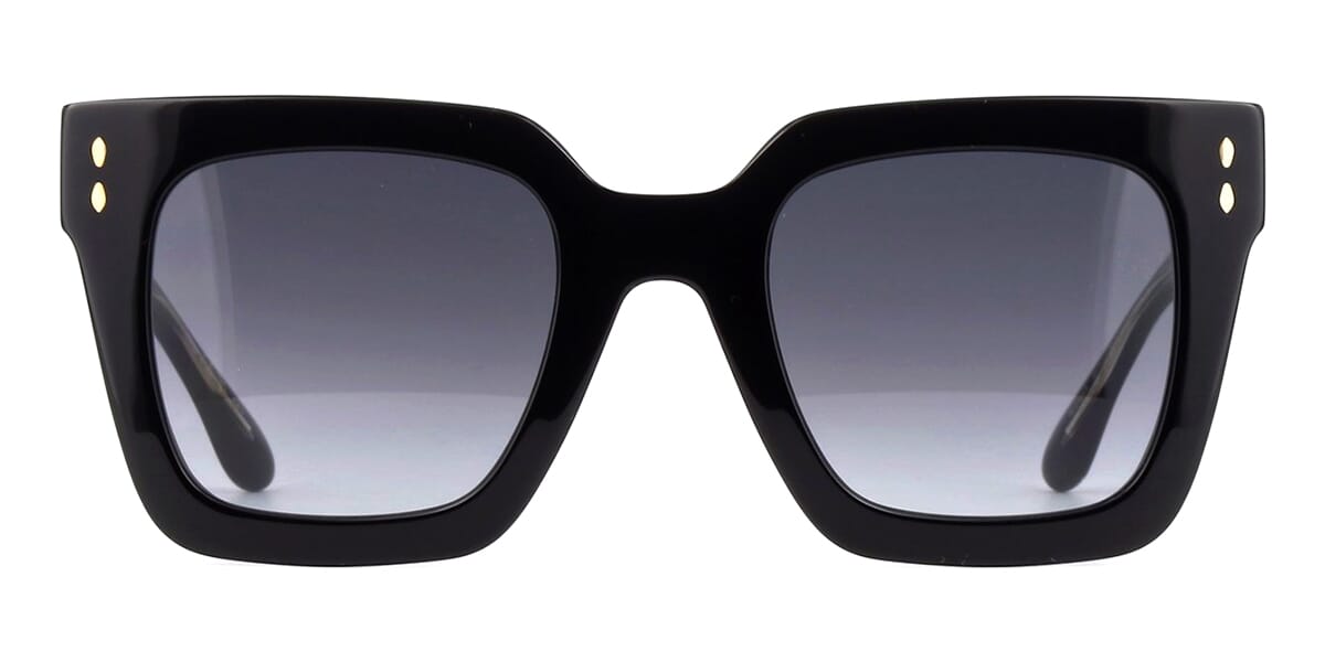 This square Isabel Marant sunglass comes in a shiny black frame with grey gradient lenses.