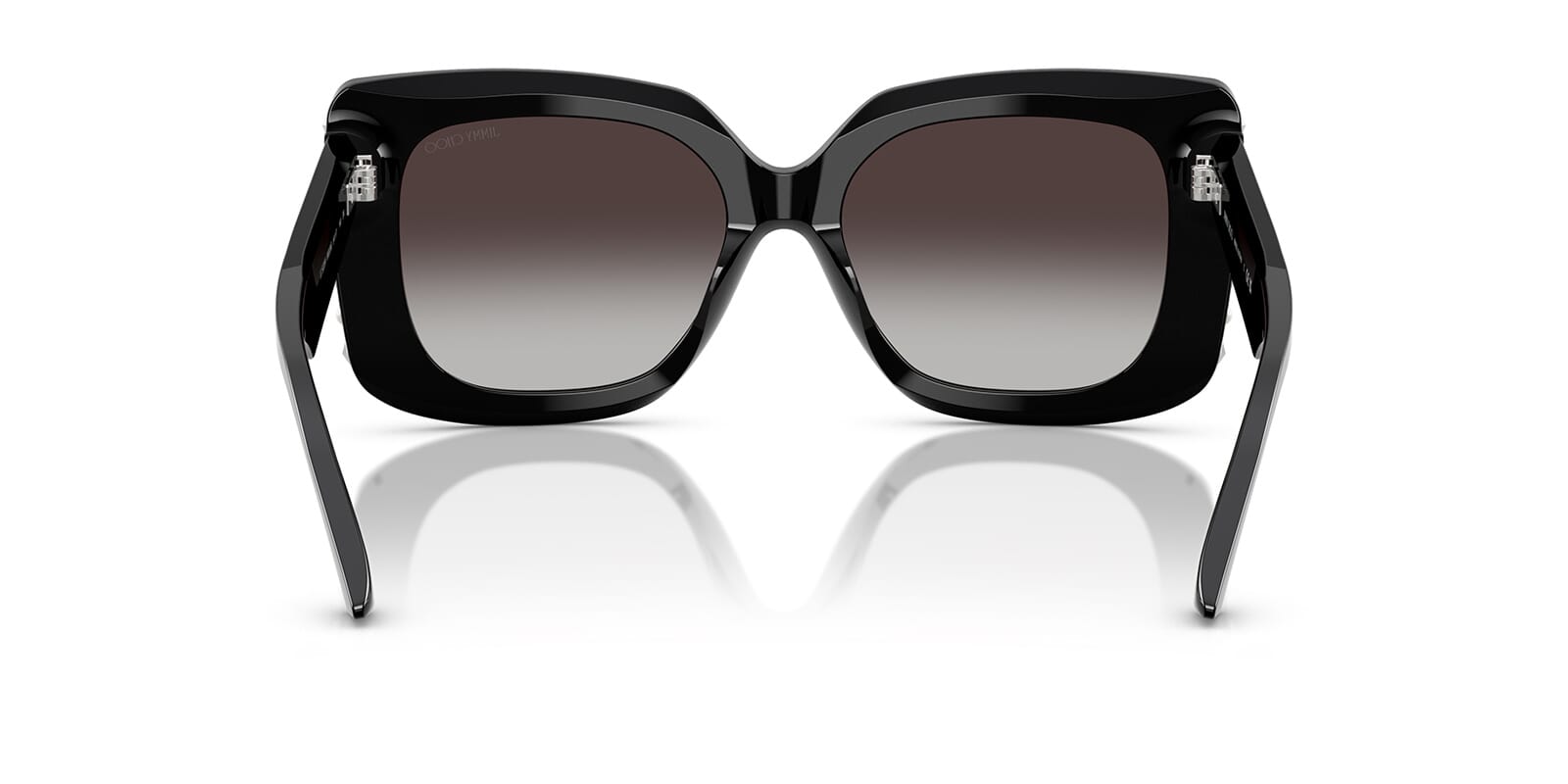 This butterfly Jimmy Choo sunglass comes in a black frame with grey gradient lenses.