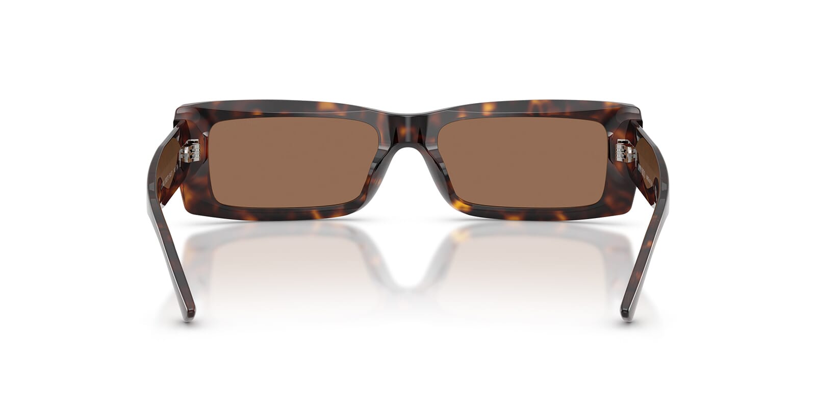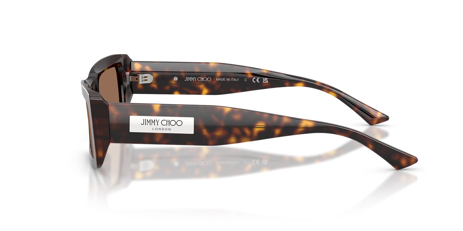 This rectangular Jimmy Choo sunglass comes in a havana frame with dark brown lenses.