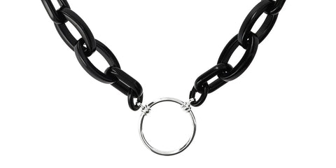 This round La Loop optical comes in a 25” black fontana acetate links with silver loop frame.