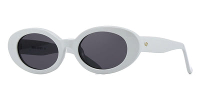This cat eye Linda Farrow sunglass comes in a shiny ivory frame with grey with light mirror lenses.