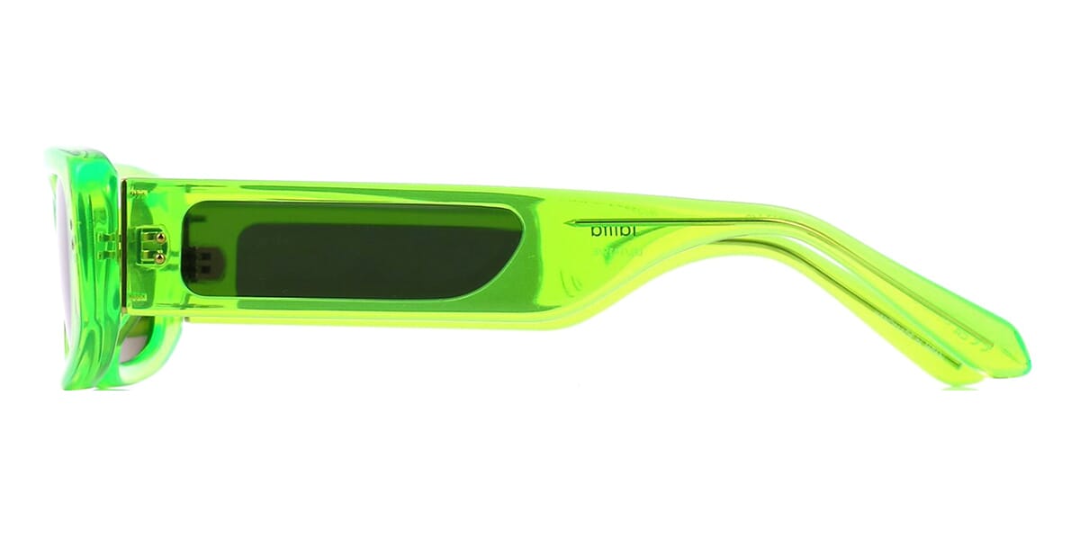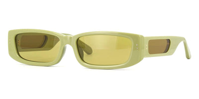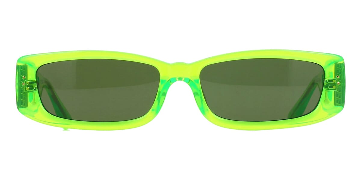 This rectangular Linda Farrow sunglass comes in a green crystal frame with dark green lenses.