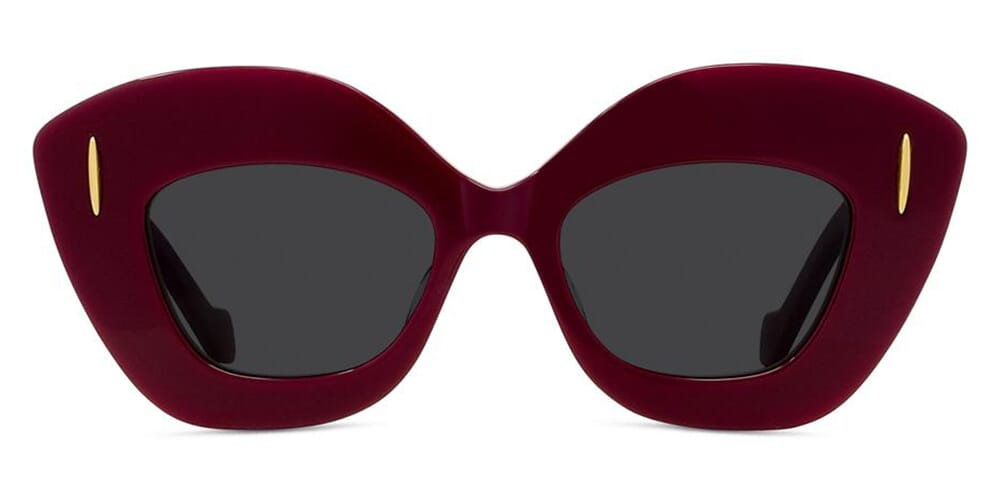 This butterfly Loewe sunglass comes in a shiny grape red frame with grey with light mirror lenses.