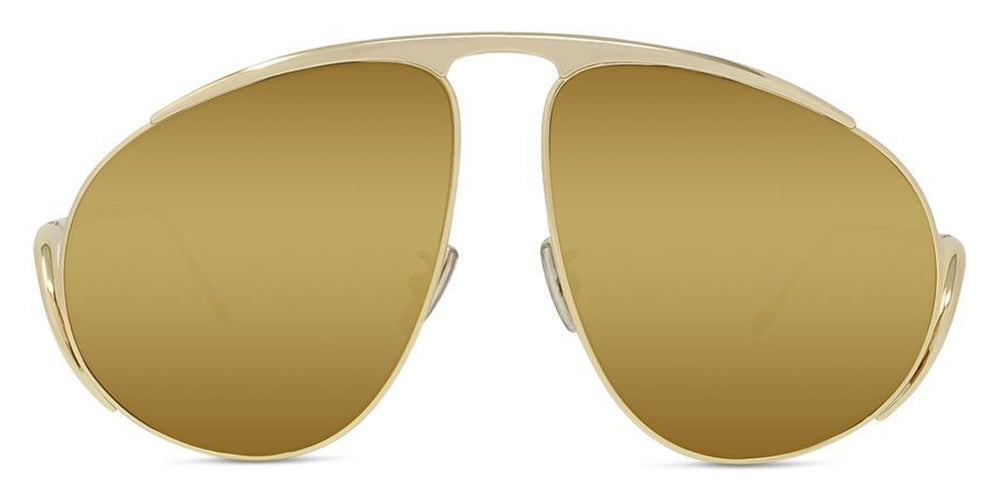 This aviator Loewe sunglass comes in a shiny gold frame with brown with gold flash mirror lenses.