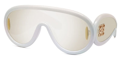 This shield Loewe sunglass comes in a injected shiny dark havana frame with brown with gold flash mirror lenses.