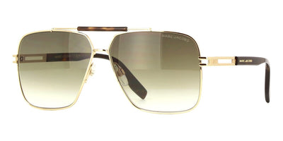 This aviator Marc Jacobs sunglass comes in a shiny gold with black frame with grey gradient with light mirror lenses.