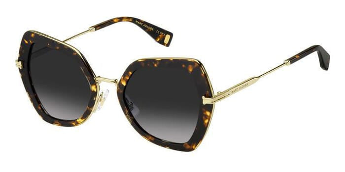 This square Marc Jacobs sunglass comes in a havana frame with grey lenses.