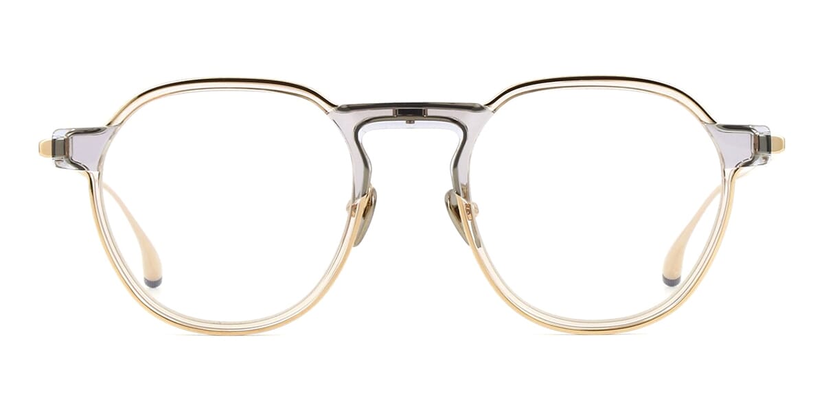 This square Masunaga optical comes in a crystal clear on rose gold frame.