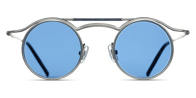 This round Matsuda sunglass comes in a matte black frame with grey mirrored lenses.