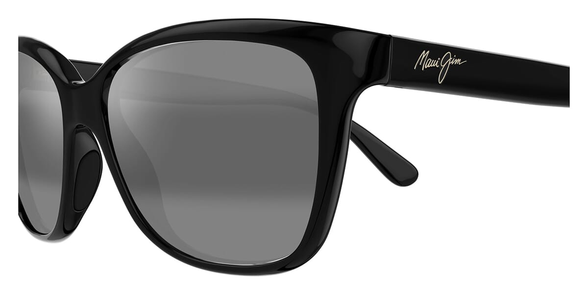 This square Maui Jim sunglass comes in a shiny black frame with neutral grey super thin glass lenses.