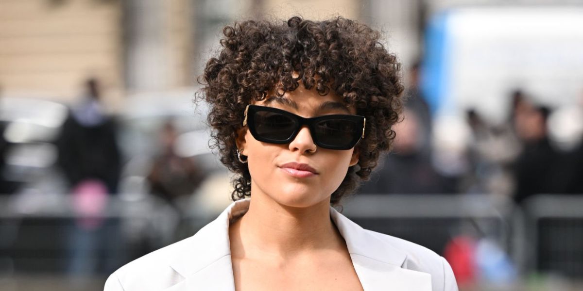 As Seen In Tatler | Black Full Rim Miu-Miu MU 09WS 1AB5S0 Rectangle Acetate Sunglasses With Dark Grey Lenses and Gold MIUMIU Logo Detail in Tatler Magazine's 'Glam-Core' Edit by Chandler Tregaskes & Lydie Harrison, November 2022