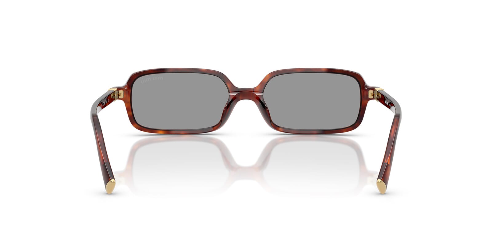 This rectangular Miu Miu sunglass comes in a havana mahogany frame with grey lenses.