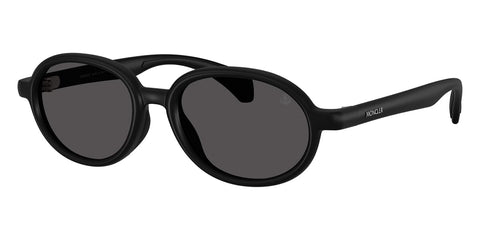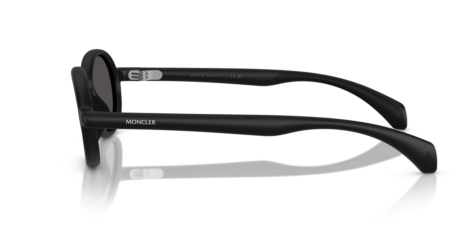This round Moncler sunglass comes in a matte black frame with dark grey to light grey gradient lenses.