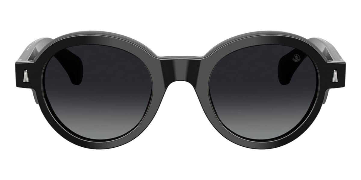 This round Moncler sunglass comes in a shiny black frame with grey gradient polarised lenses.