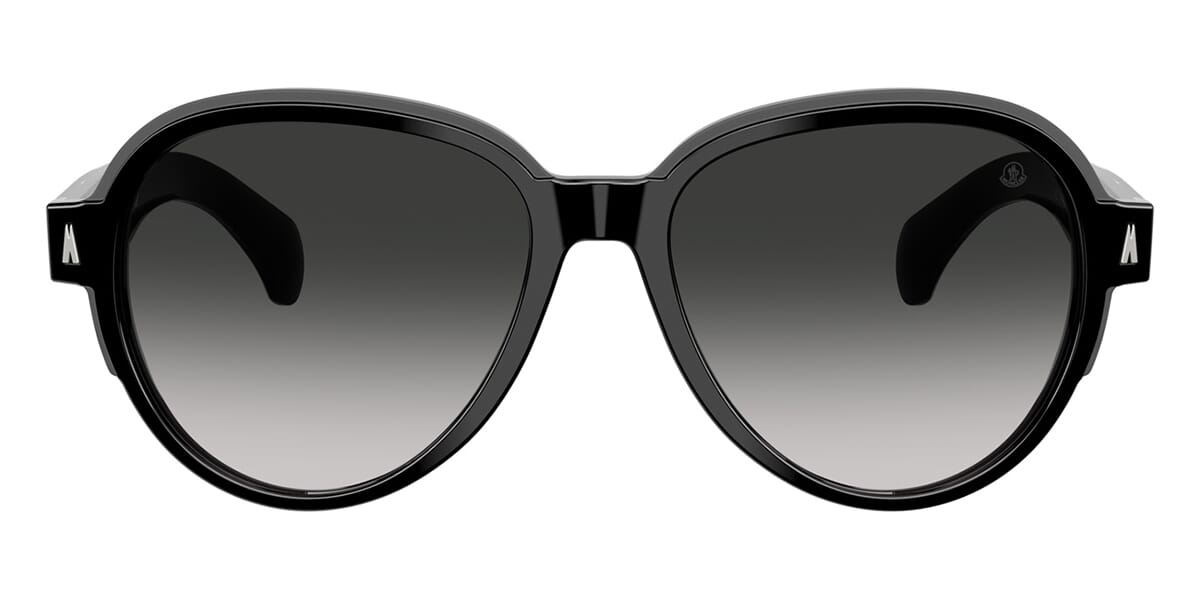 This aviator Moncler sunglass comes in a shiny black frame with grey gradient lenses.