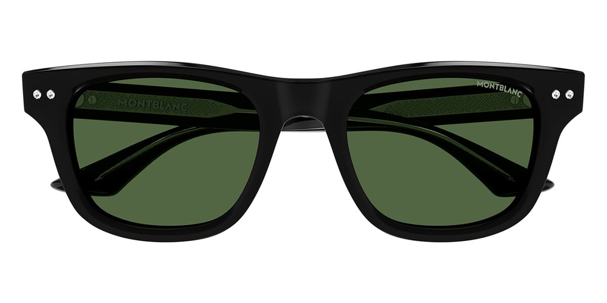 This square Mont Blanc sunglass comes in a black frame with green lenses.