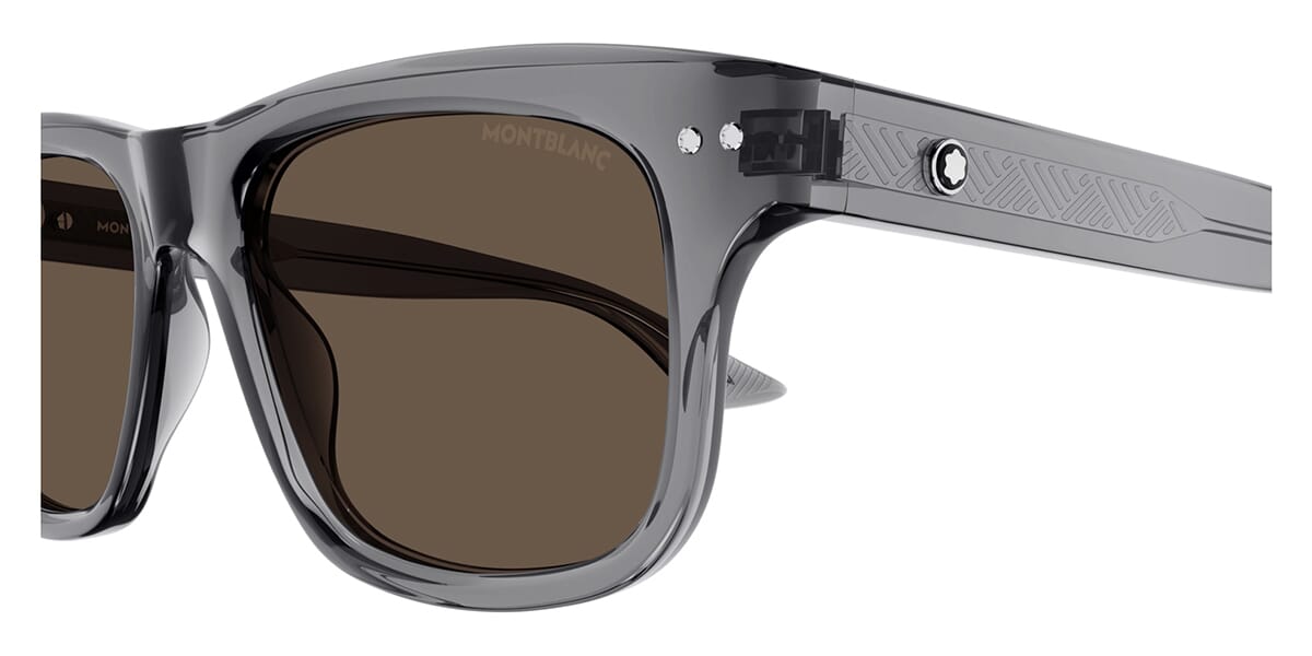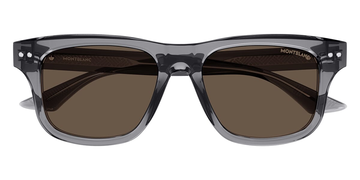This square Mont Blanc sunglass comes in a tansparent grey frame with brown lenses.