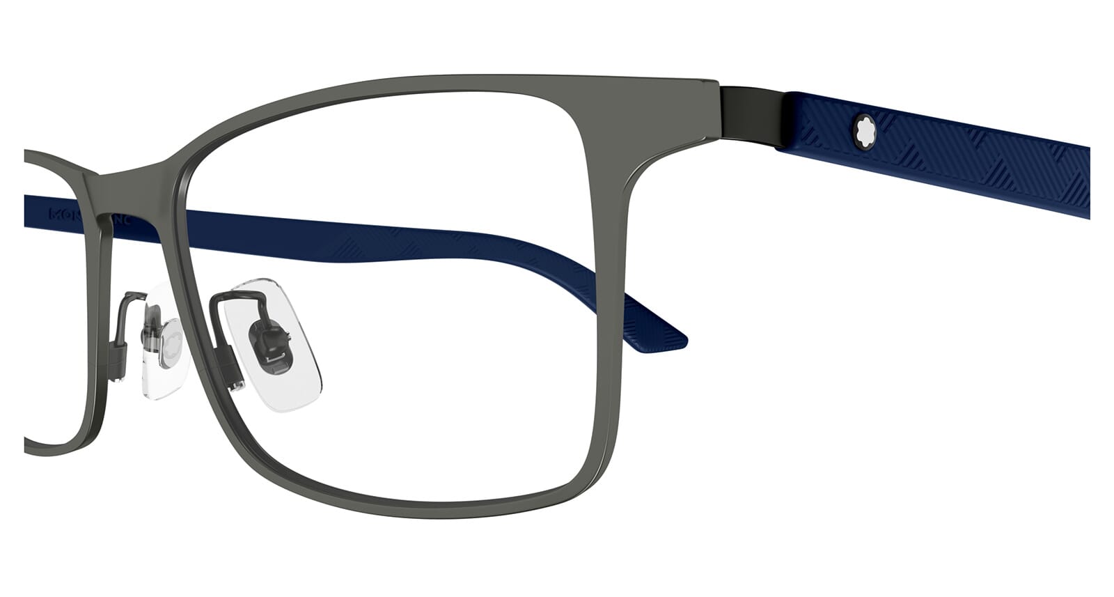 This square Mont Blanc optical comes in a ruthenium and blue frame.