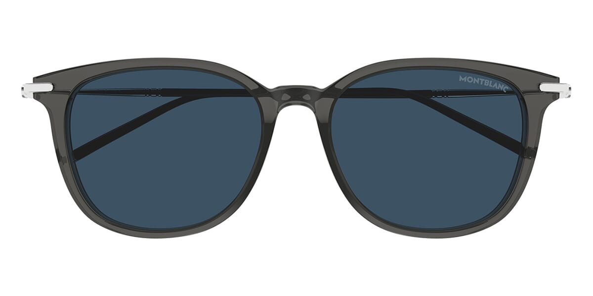 This square Mont Blanc sunglass comes in a grey with silver frame with blue lenses.