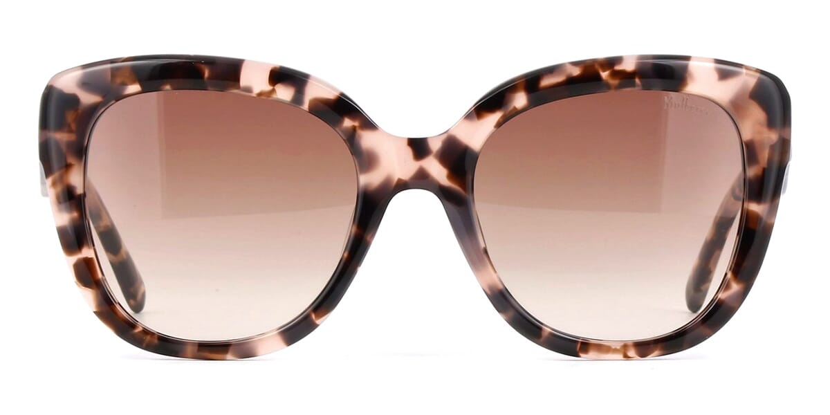 This square Mulberry sunglass comes in a shiny dark spotted havana frame with brown gradient lenses.