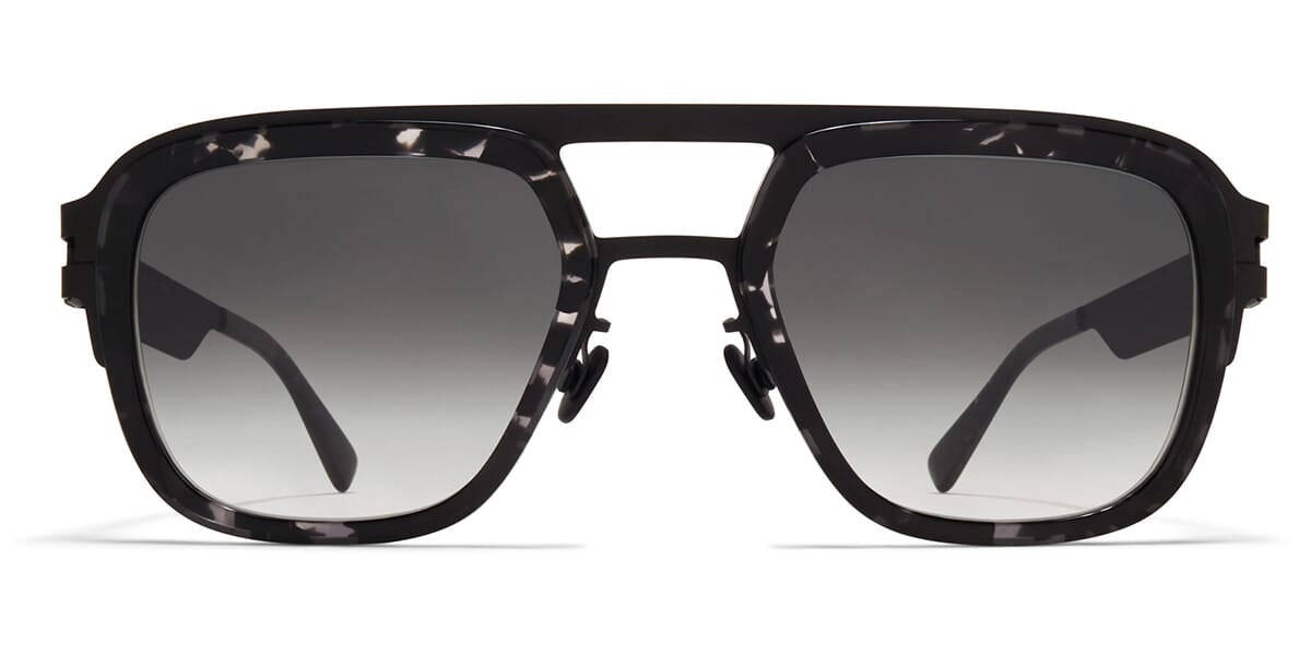 This square Mykita sunglass comes in a black havana with black frame with grey gradient lenses.
