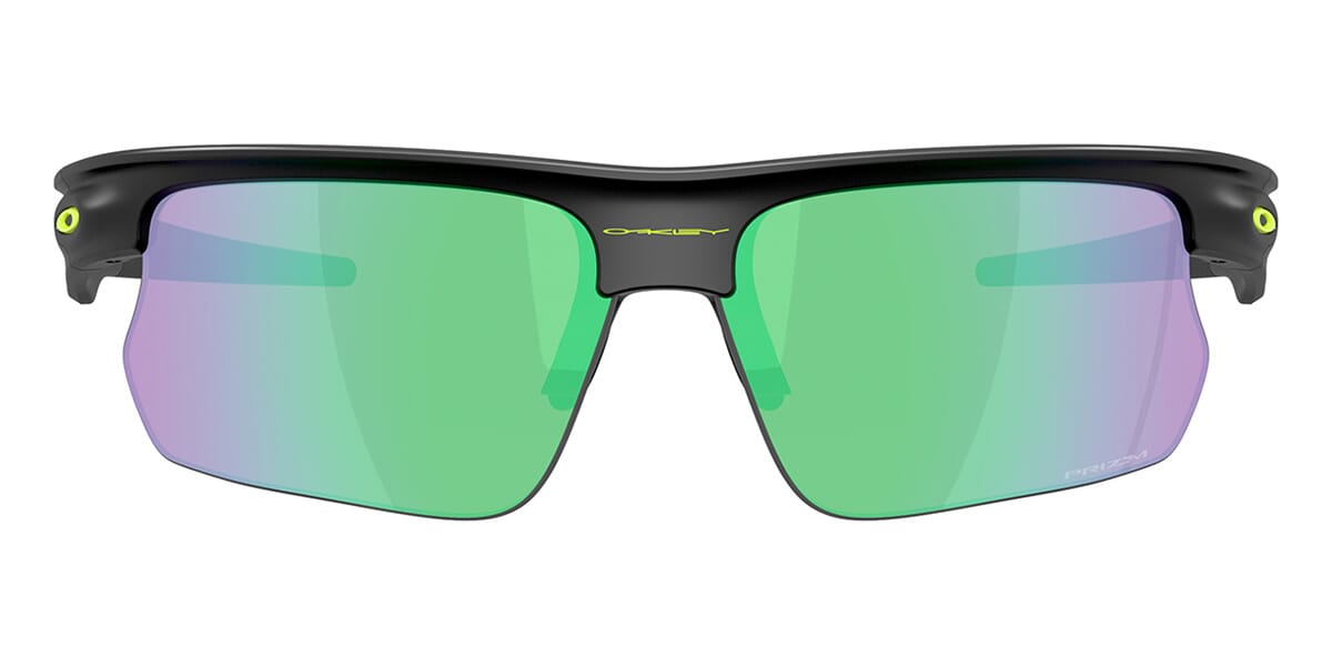 This rectangular Oakley sunglass comes in a matte black frame with prizm road jade lenses.