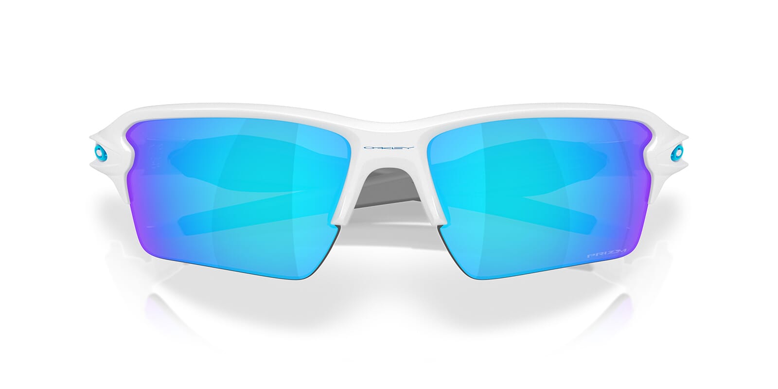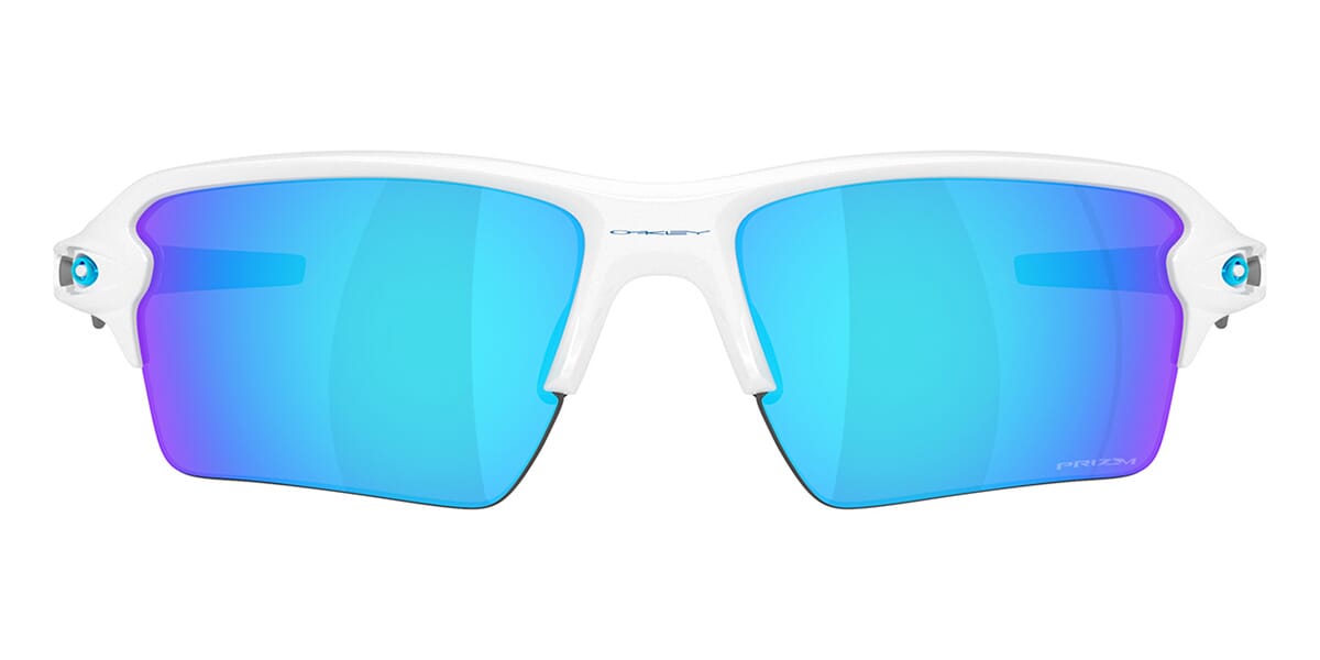 This rectangular Oakley sunglass comes in a polished white frame with prizm sapphire lenses.