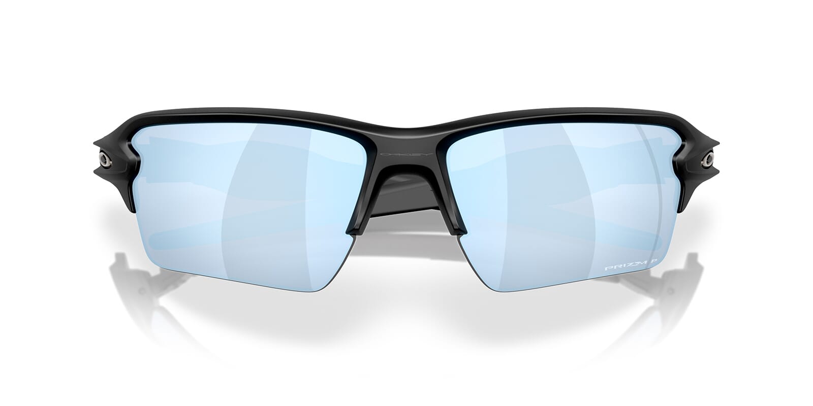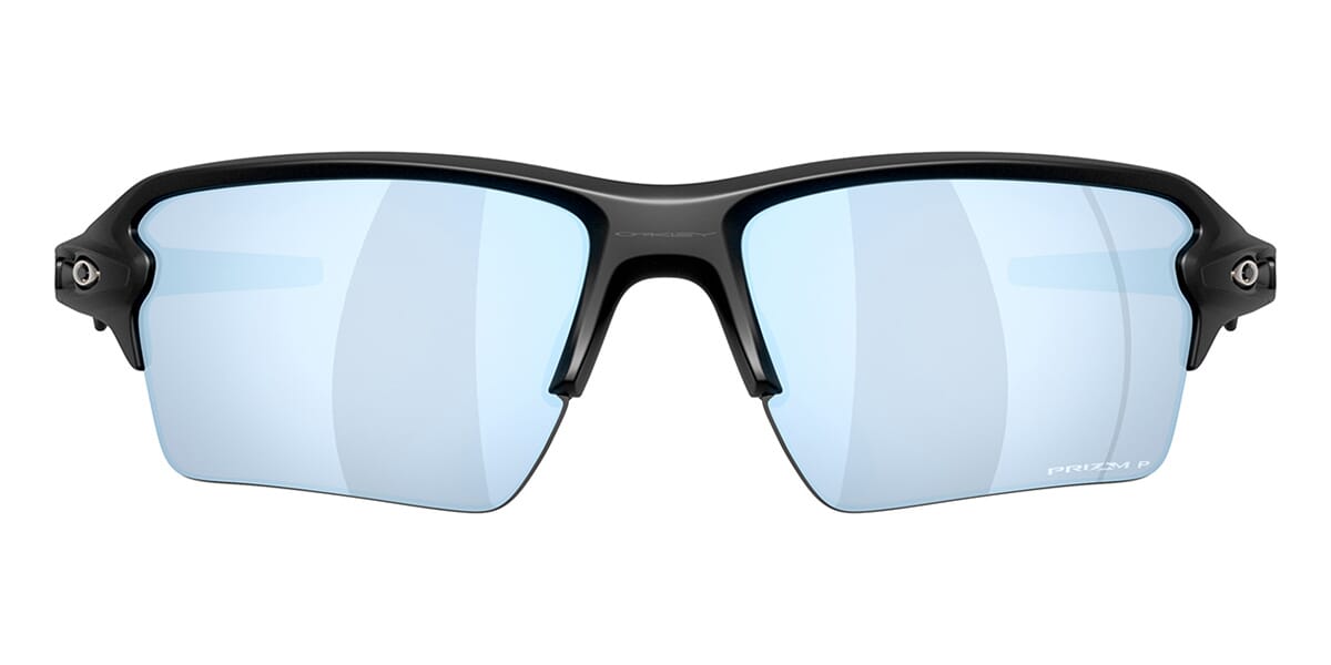 This rectangular Oakley sunglass comes in a matte black frame with prizm deep water polarised lenses.