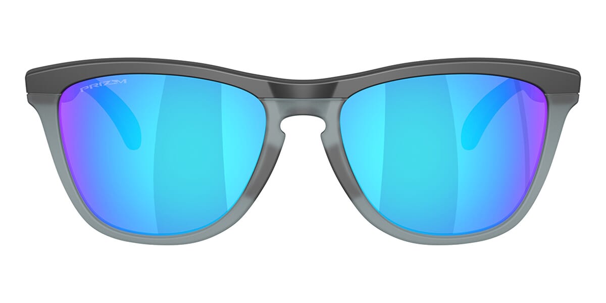This round Oakley sunglass comes in a matte black frame with prizm sapphire lenses.