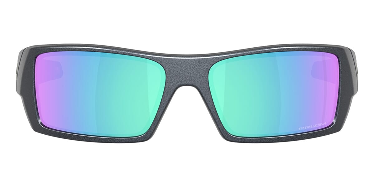 This rectangular Oakley sunglass comes in a blue steel frame with prizm sapphire lenses.